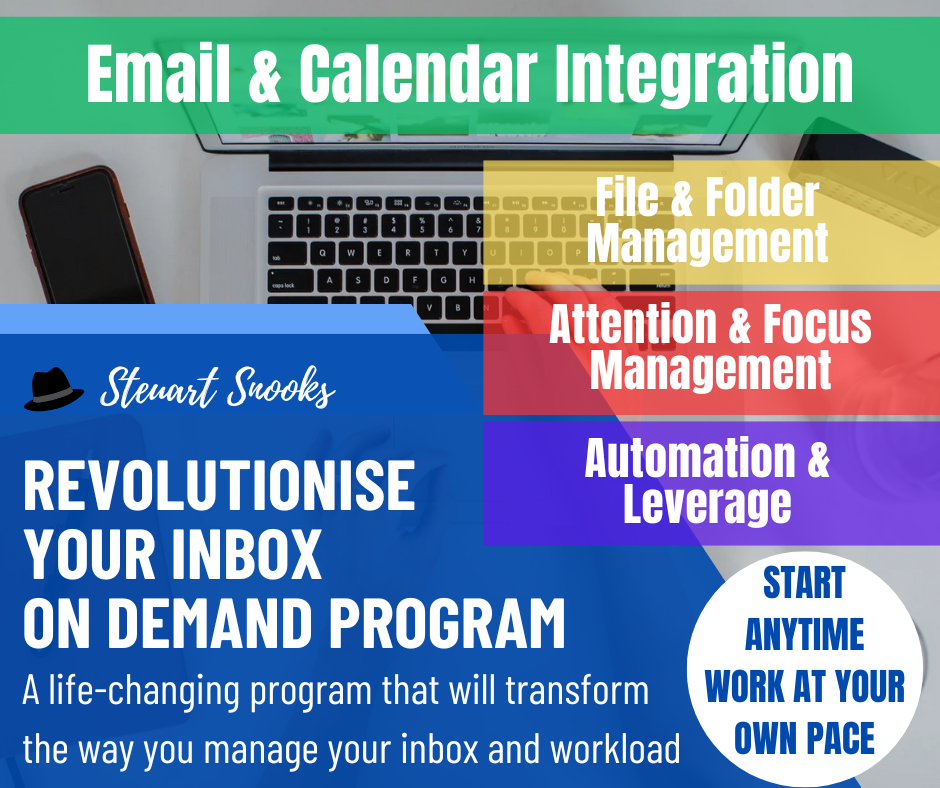 You’ll discover why you’re 81% more likely to complete your tasks when they are in the calendar and how to leverage the various powerful calendar functions to better and more easily manage your workload. This change will leave you feeling much more organised and in control and experiencing less stress and frustration.